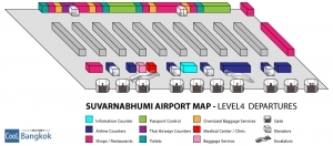 「スワンナブーム」とは「黄金の土地」という意味で、現国王ラマ9世王により命名されました。9階建てのターミナルビル、一般の旅行客が利用するのは4階から地下1階までの5フロア、各フロアの内容は以下の通りです。